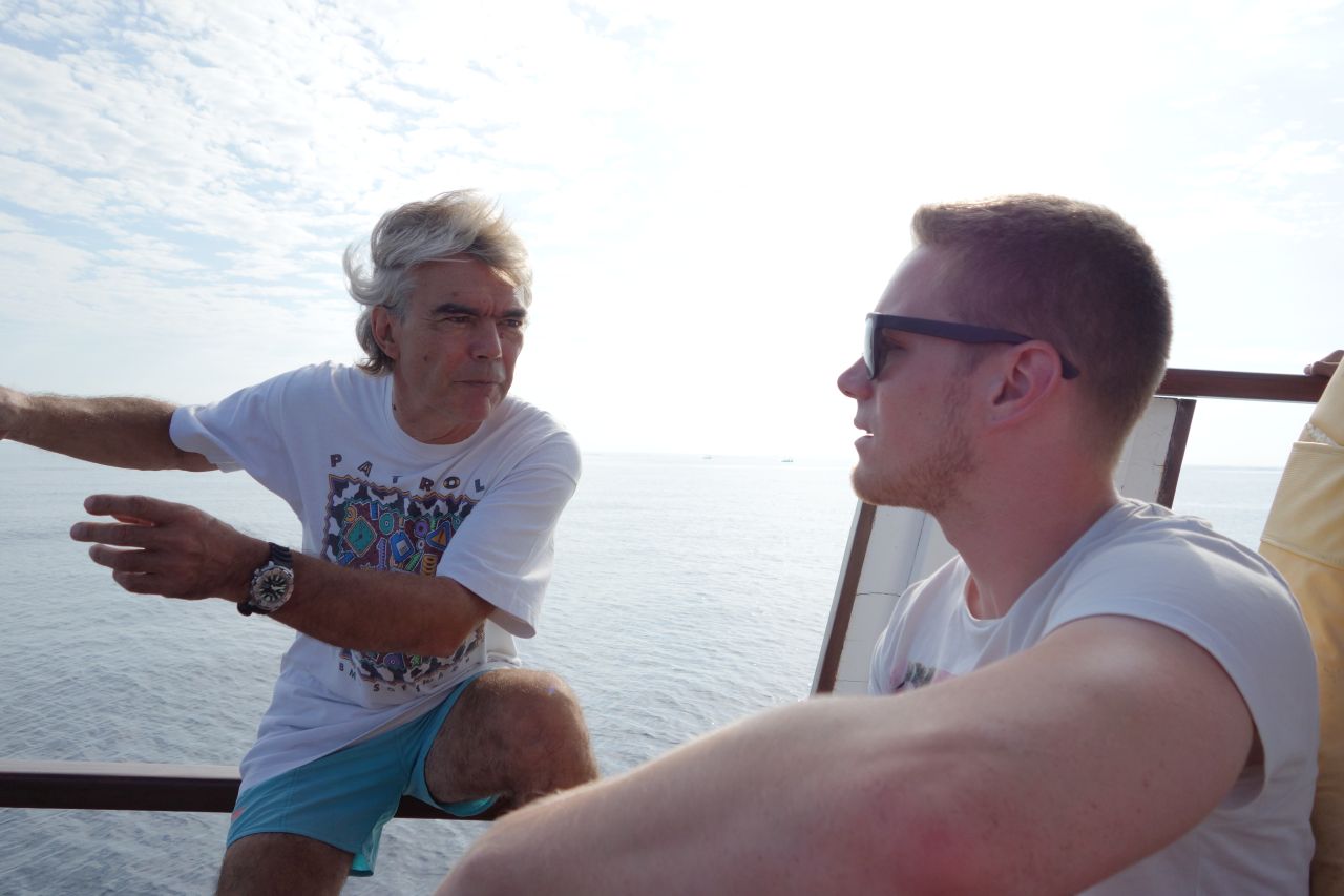 Abends verfolgten wir das schweizer WM-Spiel, diesmal herzhaft begeistert! Inkusive Verlängerung wurde es aber sehr spät und wir waren erst nach zwei Uhr im Bett. Der Tauchgang am nächsten Tag war wie erwartet traumhaft! Am Morgen tauchten wir einer 60 Meter tiefen senkrechten Felswand entlang, die über und über mit Korallen bewachsen war und von einer Vielfalt von Meeresbewohnern besiedelt war. Nach dem Mittagessen und einer Kappe Schlaf tauchten wir an einem neuen Tauchspot unter See und schlängelten uns durch malerische Korallengärten. Ivo beherrscht das Tauchhandwerk bereits erstaunlich gut und wir konnten alle problemlos auf derselben Höhe bleiben. Hier haben wir sogar zwei Schildkröten entdeckt!