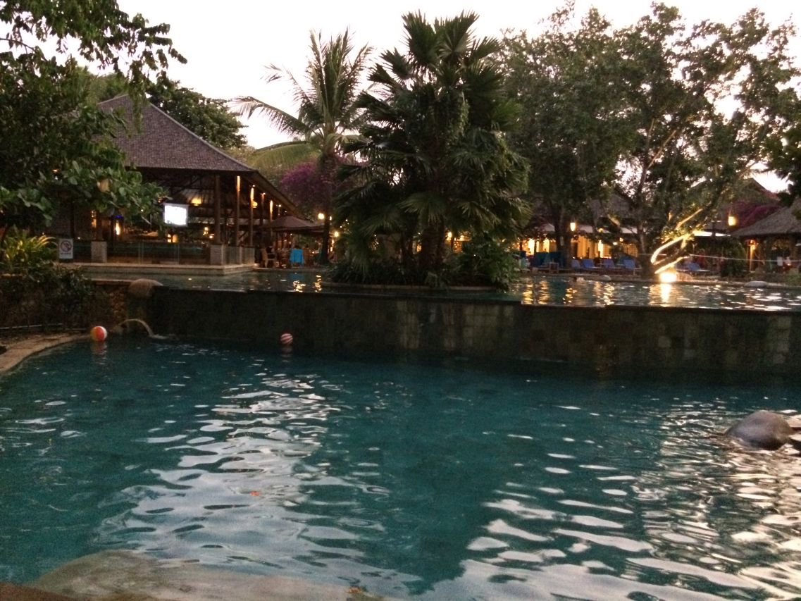 Am frühen nächsten Morgen (Die Sonne stand längst am Zenit) machten wir uns auf, einen gemeinsamen Freund aus der Schweiz zu besuchen, der in Nusa Dua in den Ferien verweilt. Wir schnappten uns ein Taxi und wurden in einem Luxusresort abgesetzt. Hier trafen wir unseren Freund Carnazza und genossen die Sonne am Strand. Später am Tag „crashten“ wir das Luxushotel und benützten die Hotelanlagen und den riesigen Swimmingpool, stets darauf bedacht wie Hotelgäste zu wirken. Als ich – der Ballprofi – mit dem Fussball eine Hängelampe von der Decke holte, war es dann langsam an der Zeit wieder zu verschwinden.